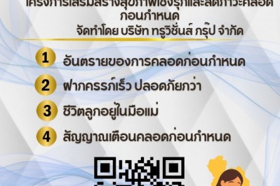 ขอเชิญร่วมรับชมสื่อประชาสัมพันธ์โครงการเสริมสร้างสุขภาพเชิงรุกและลดภาวะคลอดก่อนกำหนด การป้องกันการเกิดภาวะคลอดก่อนกำหนด