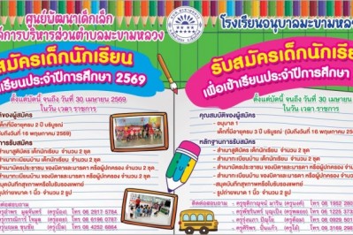 รับสมัครเด็กนักเรียน ศูนย์พัฒนาเด็กเล็กองค์การบริหารส่วนตำบลมะขามหลวง และโรงเรียนอนุบาลมะขามหลวง