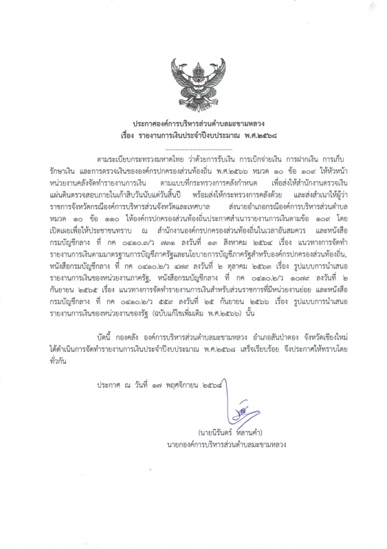 ประกาศรายงานการเงินประจำปีงบประมาณ พ.ศ.2568