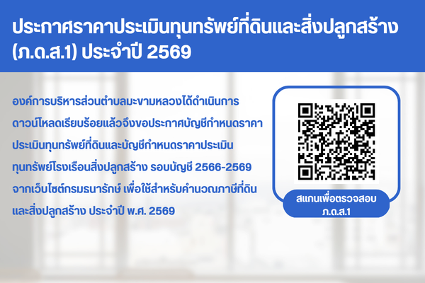ประกาศราคาประเมินทุนทรัพย์ที่ดินและสิ่งปลูกสร้าง (ภ.ด.ส.1) ประจำปี 2569