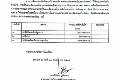 ประกาศ เรื่อง รายงานสรุปผลการจัดเก็บภาษีที่ดินและสิ่งปลูกสร้าง ภาษีป้าย และค่าธรรมเนียมต่าง ประจำปีงบประมาณ 2568
