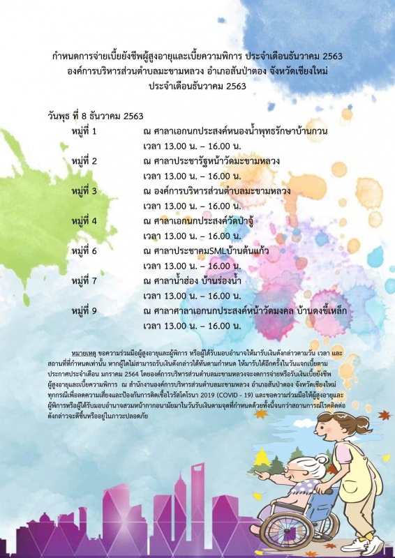 ประกาศแจกเบี้ยยังชีพฯ ประจำเดือนธันวาคม 2563