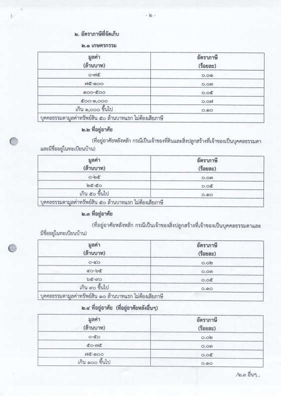 ราคาประเมินทุนทรัพย์ของที่ดินและสิ่งปลูกสร้าง อัตราภาษีที่จัดเก็บ และรายละเอียดที่จำเป็นในการจัดเก็บภาษี 2563