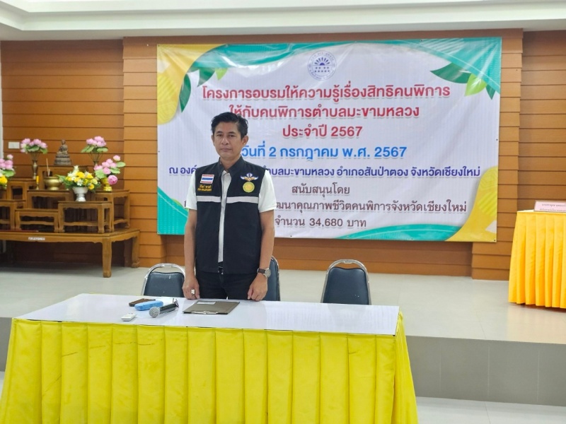 วันที่ 2 กรกฎาคม พ.ศ.2567 องค์การบริหารส่วนตำบลมะขามหลวง โดยนายนิรันดร์ หลานคำ นายกองค์การบริหารส่วนตำบลมะขามหลวง มอบหมายให้งานพัฒนาชุมชน สำนักปลัด องค์การบริหารส่วนตำบลมะขามหลวง ดำเนินโครงการอบรมให้ความรู้เรื่องสิทธิคนพิการให้กับคนพิการตำบลมะขามหลวง ประจำปี 2567 ซึ่งได้รับงบประมาณสนับสนุนจากกองทุนส่งเสริมและพัฒนาคุณภาพชีวิตคนพิการจังหวัดเชียงใหม่ ณ ห้องประชุมองค์การบริหารส่วนตำบลมะขามหลวง