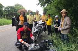 เก็บขยะและทำความสะอาดบริเวณข้างทางถนนเลียบคันคลองชลประทานในพื้นที่ตำบลมะขามหลวง