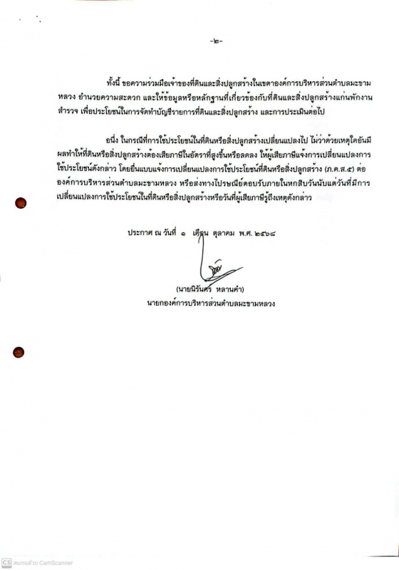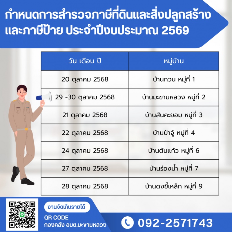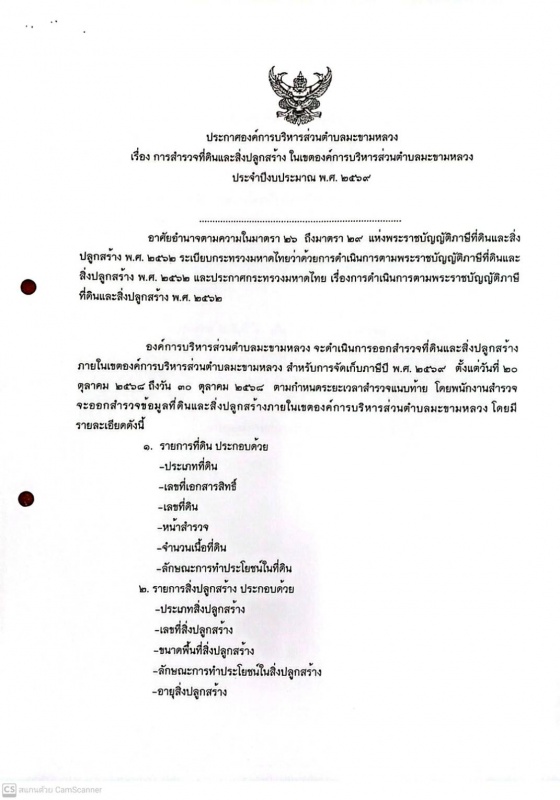 ประกาศ เรื่อง การออกสำรวจภาษีที่ดินและสิ่งปลูกสร้าง และภาษีป้าย ประจำปีงบประมาณ 2569