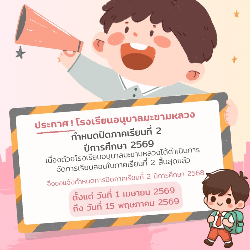 ประกาศปิดภาคเรียนที่ 2 ปีการศึกษา 2568 โรงเรียนอนุบาลมะขามหลวง